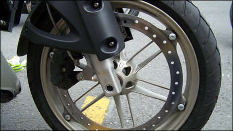 Rappelons-nous les trois règles essentielles d'une Buell : centralisation des masses, rigidité du cadre et diminution maximale du poids non suspendu. La XB12X ne fait pas exception à la règle, et cela se sent dès les premiers tours de roues. L'Ulysses hérite donc des jantes Buell à branches particulièrement élancées et du célèbre frein avant périmétrique. Outre son esthétique réussie, cet ensemble réduit de trois kilos le train avant par rapport à une configuration traditionnelle. Ce système de freinage procure une précision étonnante surtout quand on conduit la XB12X sous la pluie. Il est, de surcroît, très endurant et constant; on peut facilement envisager une visite sur un circuit de temps à autre, et ce, sans modifications au préalable.