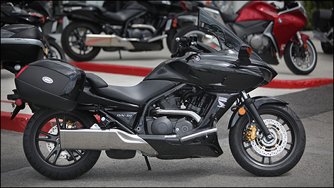 | Le pare-brise et les sacoches achetées d'un accessoiriste changent complètement l'apparence de la DN-01, en plus de la transformer en une machine aussi utile qu'agréable. (Photo: Phillippe Champoux) |