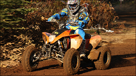 Sébastien Lévesque – La machine dégage d’entrée une impression de solidité et d’efficacité, en performant de façon surprenante dans les bosses et les sauts. Aucun doute selon moi, cette machine me semble prête pour la course dès sa sortie du concessionnaire. La qualité des matériaux et des composants utilisés impressionnent : freins Brembo, guidon Nekken en fuseau pour absorber le pire des chocs, maître-cylindre de freins Brembo et d’embrayage Magura, pneus Maxxis, jantes de compétition DWT, trois roulements pour bien supporter l’essieu arrière au bout du bras oscillant excentrique pour régler la tension de la chaîne, cadre multitubulaire en alliage 4130 (acier - molybdène –chrome), et un filtre à air bien protégé contre l’eau et le sable et facilement déposable sans outil.