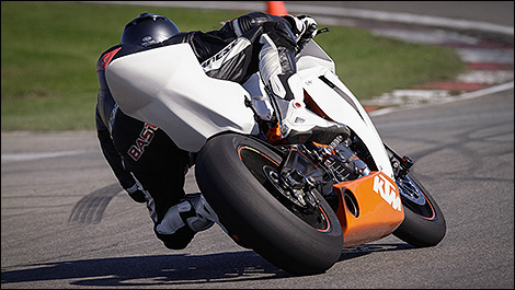 | Le roulement saccadé et la sonorité puissante de son moteur nous donnent le frisson, l’adrénaline monte au plafond avant même de s’engager en piste. (Photo: KTM) |
