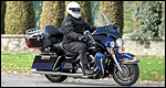 This is it, the latest ultimate expression of the Touring family - unless of course you go for the even more expensive and exclusive CVO models. The model name has changed, but the bike is still an Electra Glide under the skin, dressed up in attractive, three-tone paint jobs, new-look wheels, and extra lighting and chrome, and a 103cid engine, up from the 96cid unit in the standard Electra Glide models. We rode the bleu-mauve-black combo, while the red-black model may be more of a visual hit. [more]