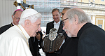 Pope Benedict XVI yesterday blessed two commemorative motorcycle gas tanks that will go on two motorcycles - one will be displayed at the Harley-Davidson Museum in Milwaukee, while the other will be auctioned to support the Good Samaritan Foundation. [more]
