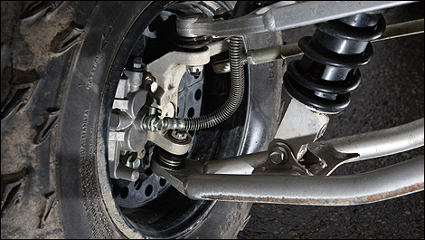 Completely redesigned two years ago, the Raptor gets a more effective braking system for 2009. Featuring petal-shaped discs, it's also more durable, fade-free and easier to modulate. Meanwhile, the hybrid design of the chassis (high-tensile steel marries with a cast aluminum frame up front, while the rear frame is die-cast aluminum) makes the king of all Raptors the lightest large-displacement sport ATV out there.