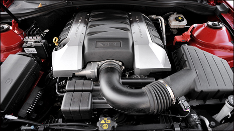 | The pushrod 6.2-litre V8 develops 426 horsepower with the 6-speed manual and 400 when bolted to the 6-speed automatic. |