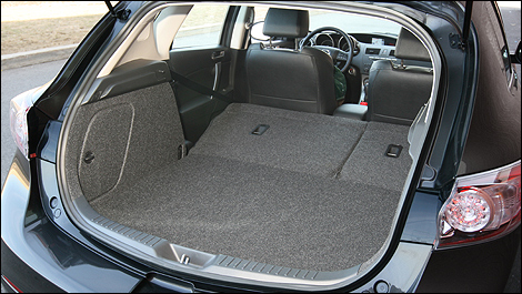 Like the Mazda3 sedan, the 3 Sport boasts a 60-40 split-folding rear seat that provides greater cargo versatility. Needless to say the rear liftgate of the hatchback is much more accommodating than the conventional trunk lid; the opening is tall and wide so you’re not constantly swearing while loading big items inside the car.