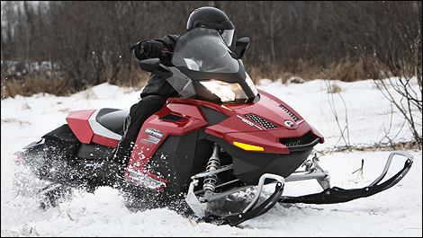 Ski-Doo’s new-for-2010 Air Control Suspension (ACS) greatly improves the trail manners of this model, as it did on the 2009 Grand Touring SE. You can adjust rear pre-load at the touch of a button, by increasing or decreasing the pressure of the air spring. Even at the lowest setting, my 70 kilos cleared the worst bumps without bottoming. The efficiency of the ACS system will prevent you from being tossed around, even on the poorly maintained trails that we frequently encounter early in the season.