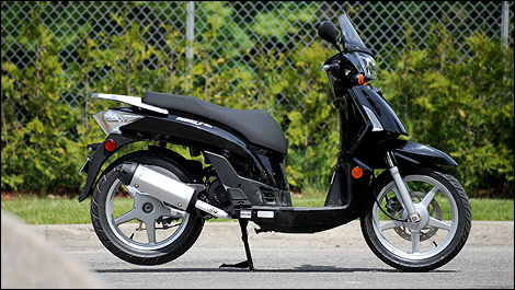 | The Kymco People S50 came to a motorcycle look, with the large diameter wheels that swallow bumps most effectively. (Photo: Matthieu Lambert/Auto123.com) |