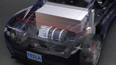 | The 375 volt AC induction air-cooled electric motor with variable frequency drive generates the equivalent of 288 hp. (photo: Tesla) |