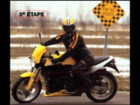 À cette étape, vous devriez avoir trouvé la cadence de votre virage. Lors de l'exécution, vous pouvez réduire encore le rayon du virage en actionnant le frein arrière tout en augmentant la pression du moteur sur la roue arrière. À ce point, vous êtes "dans" la manoeuvre. N'utilisez pas le frein avant, qui vous déséquilibrera et mettra un terme au virage. Si la moto veut tomber à l'intérieur, relâchez légèrement l'embrayage. Sinon posez votre pied gauche au sol pour récupérer votre équilibre. Si rien ne va plus, redressez la moto et ensuite freinez. Freiner avant de redresser la moto placera le poids sur votre jambe gauche une fois la moto immobilisée et vous obligera peut-être à déployer d'importants efforts pour la redresser.