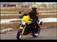 Le virage est presque complété; restez attentif. Relâchez doucement le frein arrière ainsi que l'embrayage une fois bien engagé dans la direction choisie. Ne précipitez pas la fin de l'exécution. Cette technique est, dans une certaine mesure, applicable dans une courbe en épingle. Ces courbes sont rares sur nos routes, mais il en existe. Comme plusieurs manoeuvres, exécuter un virage en U avec succès demande un minimum d'entraînement, ce qui n'est pas déplaisant en soi. Pour vous entraîner, trouvez un endroit sûr. Durant ces pratiques, essayez aussi de faire des cercles complets de plus en plus serrés, cela vous aidera à visualiser le virage en U comme un demi-cercle. N'essayez pas de maîtriser cette technique en une seule pratique; faites plutôt plusieurs petites pratiques étalées sur quelques jours. Cette méthode d'entraînement est utilisée dans plusieurs sports et donne les meilleurs résultats. Elle s'applique très bien à la conduite de moto pour en améliorer son contrôle et votre confort. La maîtrise de cette technique vous sera particulièrement utile avec un passager à bord ainsi que des bagages.