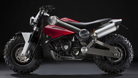 Dévoilé à Milan et arborant un air de ressemblance avec le Rokon, ce concept de véhicule tout-terrain, imaginé par Alessandro Tartarini, fils du fondateur d'Italjet, pourrait rouler sur toutes sortes de surfaces, que ce soit du bitume, du sable, de la terre ou encore de la neige.