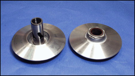 | Exemple de poulies de transmission à variation continue. |