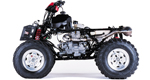 4e partie - Le mode hydraulique de la boîte de vitesses automatiqueHonda utilise sur son VTT Quad modèle TRX 650 Rincon, conçu en 2003, un mode de boîte de vitesses issu en droite ligne de son expérience en automobile et en motocyclette. Au milieu des années 1970, Honda a vendu des modèles HondaMatic de 750 et de 450 cc. On peut faire le rapprochement entre cette boîte automatique à 3 rapports et celle de la Honda Civic de 1985. Simple et de petite taille, elle s'incruste parfaitement dans le carter moteur.