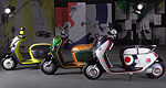 Le troisième, un scooter biplace, adopte un design rétro! Inspiré de la culture « pop » des années 1960, ce scooter qu’a présenté Agyness Deyn à Londres a une robe blanche arborant de nombreux autocollants. Son rétroviseur gauche affiche le logo MINI, alors que celui de droite s’enrobe de la cocarde rouge, blanc et bleu de la Royal Air Force (qu’on retrouve aussi sur les flancs du scooter). Enfin, sur sa selle en cuir perforé, un « Union Jack » rappelle l’identité britannique de la marque MINI.