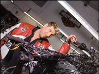Après le troisième accident, MacLeod avait décidé de mettre une croix sur la moto, par respect pour sa famille et son gérant. Pas facile de tenir une telle promesse, surtout quand on est un mordu ! D'ailleurs, dès qu'il a vu sa belle Harley-Davidson blanche Low Boy 1340 toute chromée, il a eu le coup de foudre. "Je me rappelle encore du jour où je l'ai aperçue dans la vitrine de Moto Internationale, à Montréal. Wow ! Ce qu'elle pouvait avoir de la gueule. Il s'agit du dernier modèle Low Boy qu'a fabriqué H-D. Je la voulais. J'ai appelé mon comptable, discuté un peu avec ma famille et je l'ai achetée. "