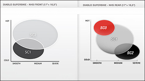 J’ai trouvé la réponse après plusieurs minutes en piste sans interruption (session ouverte de plus de 30 minutes à Tremblant). Le nouveau Diablo Superbike se montre encore plus constant au fil des tours. Si on le chauffe trop, on a qu’à diminuer légèrement le rythme (deux dixièmes) le temps d’un demi-tour pour retrouver une performance optimale. De plus, la nouvelle cuvée se montre également plus durable d’environ 25% par rapport à celle qu’elle remplace et permet toujours de rouler fort jusqu’à la fin des marques d’usure.