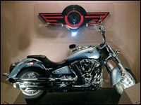 Kawasaki nous en a mis plein la vue avec sa toute nouvelle ZX-10R. "Machine de guerre" serait le qualificatif le plus approprié selon moi. Face à elle s'exhibait la rutilante Vulcan 2000. Énorme deux roues, elle attire le respect. J'ai hâte d'en voir une rouler cet été.