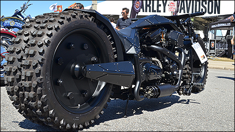 Le choix se trouve des plus diversifiés, des motos modifiées, de vraies œuvres d’art qui roulent réellement. Pas de simples esquisses ou maquettes d’exposition, sauf peut être pour la grande gagnante, une espèce de Dodge Tomahawk munie de pneus de motocross et d’un échappement imitant une mitrailleuse à multicanon. Une monture qui pourrait fort bien prendre la vedette dans un film de fiction.