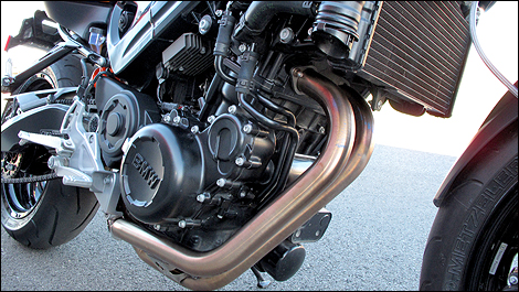 Malgré une architecture totalement différente de celle du Boxer 1200, le bicylindre de la F800R reproduit au ralenti et à bas régime la symphonie typique des bicylindres de la marque. Il s’agite joliment dès les 3000 tr/m, offre un couple qui autorise un pilotage efficace à mi-régime, et s’envole de 7000 tr/m vers la zone rouge, accompagné d’une sonorité métallique jouissive. De plus, la souplesse à bas régime aide à ne pas trop jouer de la boîte de vitesse, alors que les 4e, 5e et 6e rapports raccourcis contribuent aux excellentes reprises.