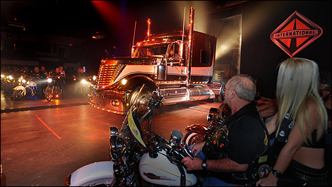 Navistar lance un camion traité à la « Harley »Si vous désirez annoncer au monde entier votre amour pour votre marque favorite, ou que votre Pick-up s'essouffle un peu à tirer la remorque transporteuse de votre amour de cruiser, le manufacturier de poids lourds Navistar lance le jouet qu'il vous faut : sa nouvelle gamme de camions tracteurs « Harley-Davidson Special Edition. » dont la peinture et les composantes évoquent directement la grande marque de Milwaukee. À l'instar des motos de la fameuse marque, Navistar annonce aussi des accessoires pour donner à votre camion favori une apparence unique, le reflet de votre personnalité, comme vous l'aurez fort probablement fait sur votre cruiser. Après les Pick-up Ford aux couleurs Harley, voici un autre manufacturier qui met à profit l'image de marque H-D. Saluons encore une fois les génies (le mot est juste) du marketing chez H-D, qui savent profiter du marketing et de l'image d'autres grands manufacturiers pour augmenter leur présence sur le marché américain. Photos : Navistar