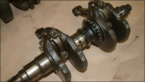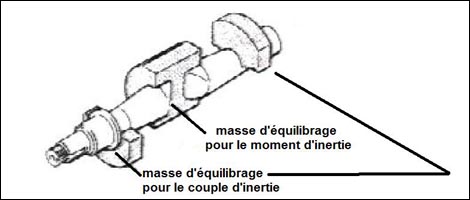 La masse d'équilibrage est capable d'annuler totalement la force d'inertie au point mort haut (moment où le piston se trouve au plus haut de sa course pendant le cycle de la combustion). La règle veut que le vilebrequin soit garni de masses dont le poids est équivalent au poids de l'ensemble de la bielle, de l'axe et du piston. Par contre, à mi-course, une force centrifuge vient déranger l'équilibre et rien ne peut la contrecarrer. C'est à ce moment que les vibrations sont à leur maximum.