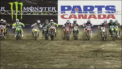 Le spectaculaire concours de Freestyle du Supermotocross de Montréal mettant en vedette les plus talentueux spécialistes de cette discipline casse-cou, comme notre héros local Ben Milot ou encore le Français Charly Pagès, a donné plus d’un frisson dans le dos aux spectateurs. Plus d’une demi-heure de sauts extrêmes couronnés par un saut exécuté à la chaîne par cinq pilotes se suivant à moins de 20 pieds les uns les autres restera gravée à jamais dans la mémoire des spectateurs qui en redemandaient encore et encore.