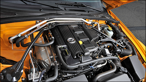 | Le 4-cylindres en ligne de 2,0 litres de la MX-5 produit 167 chevaux et un couple de 140 lb-pi. |