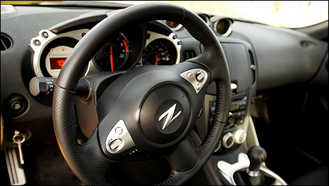 Nissan a repris son concept du volant réglable qui entraîne le bloc d'instrumentation, ce qui évite, par le fait même, toute obstruction visuelle. De manière incompréhensible, le volant n'est pas télescopique, ce qui limite un peu la recherche d'une position de conduite et le confort. Par contre, les sièges, bien que différents l'un de l'autre, offrent un bon maintien latéral; l'assise du conducteur soutient bien les cuisses grâce au renflement central du siège. Malgré un format réduit par rapport à la 350Z, on se retrouve en position de confort et d'espace tout en faisant corps avec la voiture.