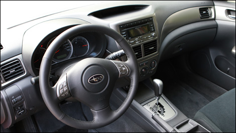 L'accès à bord est facile. On notera une nouveauté du côté de Subaru : des cadres de glaces latérales. Cet ajout donne l'impression d'une solidité accrue quand on ferme les portières, mais augmente les bruits éoliens. Les lignes du tableau de bord plus arrondies, qui se marient au style de la voiture, rehaussent le plaisir d'être à bord. Le conducteur jouit d'un siège réglable en hauteur, d'un volant télescopique de série, même dans la version de base. Les glaces électriques et la climatisation font partie de l'équipement de série ainsi que le régulateur de vitesse.