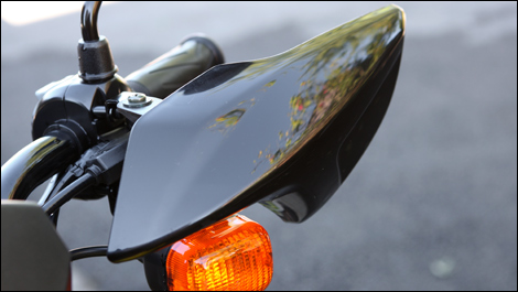 | Des protège-mains de couleur appariée à celle de la carrosserie ajoutent une note motocross à l'ensemble. |