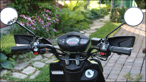 Rangement trop modesteOn peut ouvrir le coffre en tournant indifféremment la clef de contact vers la gauche ou vers la droite. Il logera un casque, mais pas tous les modèles de casque intégral. Si Yamaha comptait faire du BWs 125 un citadin pratique, elle rate son coup. C'est peut-être ici ma seule critique d'importance. Outre le coffre sous la selle et le crochet pour le casque supplémentaire, on ne retrouve aucun petit espace de rangement. On n'offre pas de support à bagages non plus. Il faut donc porter un sac à dos pour faire les courses ou apporter ses livres au collège. Ces petits détails ont toute leur importance quand on roule en scooter. Cette carence influera sur ses ventes urbaines.