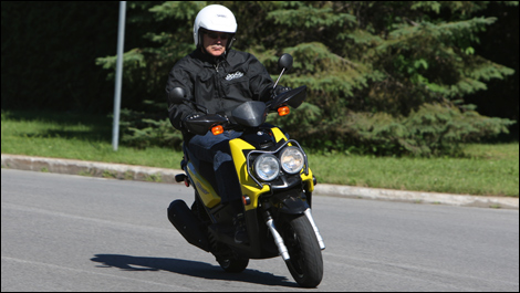 L'embrayage permet des départs sans hésitation. La puissance du monocylindre assure une bonne accélération et démontre sa capacité à maintenir sans effort une vitesse de croisière de 90 à 95 km/h, même en pente légère ou avec un vent de face. Ce BWs circule aisément sur les voies de service dont la vitesse maximale est de 70 km/h. Il constitue donc un excellent scooter métropolitain. En descente, j'ai atteint les 110 km/h. Jamais je n'ai causé de ralentissement dans la circulation (pont-tunnel Louis-Hippolyte-La Fontaine, boulevard métropolitain et voies de service des routes 13 et 15).