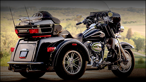 Les études de Harley-Davidson ont révélé le besoin de créer une alternative pour ceux qui recherchent une conduite moins épuisante et plus stable que ce qui est normalement possible d'obtenir en moto. Bien sûr, l'image de Harley devait demeurer intacte. La solution offerte par Milwaukee, la Tri Glide, offre un tri cycle basé sur le nouveau châssis de la famille Touring. On retrouve deux roues à l'arrière pour une facilité de pilotage et d'une stabilité proche de celle d'une moto, ce qui est de loin préférable aux machines qui disposent de deux roues à l'avant et qui ont tendance à trop serpenter sur les bosses. Les usagers plus matures retrouveront la même sensation qu'ils aimaient tant en moto, tandis que les amateurs convertis apprécieront la douceur de cette nouvelle génération de Harley à deux et à trois roues. La Tri Glide est déjà rendue chez les concessionnaires, et se vend 37 399 $ pour le modèle de base. Photos : Harley-Davidson