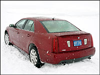 J'ai fait la même chose avec la STS pour bien comparer, désactivant le contrôle de la stabilité après un tour ou deux. La Cadillac semblait plus à l'aise sur la glace que la Lexus, mais les deux ont bien tiré leur épingle du jeu. La STS était cependant plus manoeuvrable et, après avoir essayé les deux voitures l'une après l'autre, j'étais sûr que la plus grosse des deux était aussi la plus habile sur la glace.