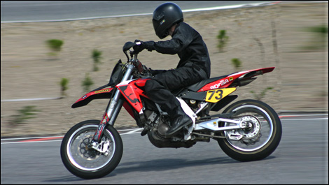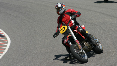 L'adrénaline pureNotre-Dame-de-la-Merci, Québec - L'équipe de Moto123.com a été invitée à Mécaglisse le 21 juillet dernier pour faire l'essai de la SXV 5.5 super moto Édition 2007. La plupart des motos du type supermotard sur le marché nord-américain proposent la même recette. Elles sont animées par un monocylindre à 4 temps à carburateur, et leurs suspensions ainsi que leur cadre sont dérivés d'une machine de motocross ou d'enduro.