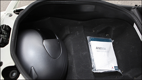 | L’espace de rangement de 56 litres, verrouillable et illuminé, peut accueillir deux casques. |