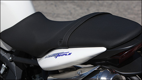 | Moulée pour la conduite sportive, la selle assure néanmoins un bon niveau de confort (Photo: Philippe Champoux/Moto123.com) |