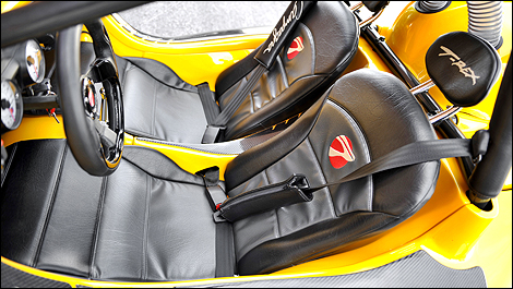 Ensuite, il faut accepter la promiscuité qu'impose l'habitacle. Si, comme votre humble serviteur, l'embonpoint vous tare, partager ce réduit exposé aux éléments n'est pas nécessairement agréable. Et puis, il faut une bonne dose d'agilité pour se glisser les jambes sous le tableau de bord, dans l'éspace étroit que cache le museau, et ainsi prendre place dans un des deux baquets intégraux qui vous dépose à quelques centimètres du sol.
