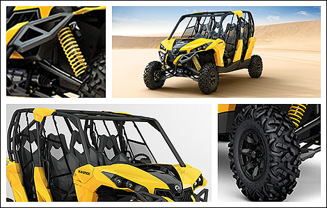 Le Can-Am Maverick MAX 1000R 2014 profite de la même ingénierie éprouvée que le modèle Maverick 1000R, en plus de pouvoir accommoder vous et 3 de vos amis grâce à son empattement allongé de 75 cm - environ 16 cm de plus au total que le