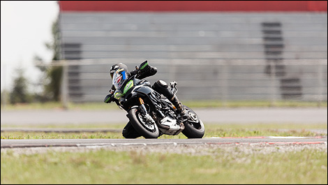 Les reprises en sortie de virage sont toujours très bonnes, chaque rotation de la poignée propulse l’engin à des vitesses trop élevées pour la route. (Photo: Sébastien D'Amour)