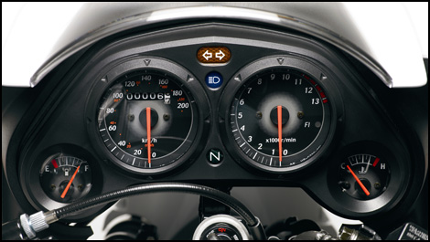 Ergonomique à souhaitLa CBR125R comporte un tableau de bord complet : compteur de vitesse, compte-tours, indicateur de température du liquide de refroidissement et, même, jauge de carburant. La 125R offre une position standard, beaucoup moins extrême que celle qu'on retrouve sur les plus grosses CBR, et comporte une selle d'une hauteur raisonnable de 776 millimètres, ce qui devrait en faciliter l'apprentissage.