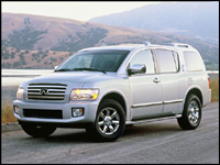 Dans le cas présent, c'est plutôt la camionnette Titan et l'utilitaire Armada qui ont servi de base. C'est pourquoi le QX56 est construit sur le même principe de châssis en échelle. Il utilise le moteur V8 de 5,6 litres développant 315 chevaux et produisant 390 livres-pied de couple, ce qui autorise une capacité de remorquage de 8800 livres. Le QX56 est également équipé d'un système de transmission intégrale particulièrement réussi dans la mesure où il livre une répartition égale de la puissance aux trains avant et arrière à l'accélération initiale. Il envoie ensuite 100% de la puissance aux roues arrière en conduite normale, et cela, tout en permettant une variation infinie de la répartition de la motricité selon les conditions d'adhérence.