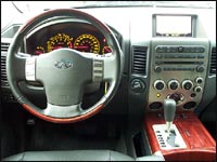 La planche de bord, ergonomique et bien dessinée, présente cependant une allure plus ou moins réussie, qui ne reflète pas l'image d'un véhicule de 75 000 $. Les plastiques bon marché se marient mal aux appliques de faux bois et d'aluminium brossé, tandis que l'éclairage rougeâtre plutôt faiblard de la planche de bord rappelle certains véhicules de marque Pontiac. Contre toute attente, le plus décevant de tout concerne la qualité d'assemblage, carrément inadéquate. Les plastiques recouvrant la planche de bord sont fixés à la hâte, ce qui est indigne d'un véhicule signé Infiniti. En fait, l'habitacle en général semble être assemblé par des novices, car les nombreuses consoles placées au plafond, les plastiques recouvrant les parois latérales et même les sièges sont mal fixés. Cela occasionne bien sûr une pluie de cliquetis, que même le plus sourd des êtres humains n'accepterait d'endurer, et particulièrement dans un véhicule de ce prix. Et dire que pendant des années, les Japonais se riaient de la finition des véhicules nord-américains !