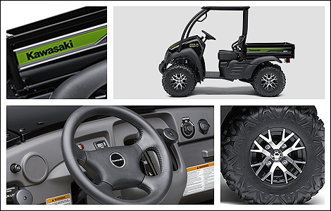 Les acheteurs de véhicules côte-à-côte utilitaires ne se précipitent pas chez les concessionnaires Kawasaki en raison de leur style. Pour 2014, toutefois, le modèle d'entrée de gamme du fabricant japonais ajoute une édition spéciale au look coriace : peinture Noir super, éléments graphiques Vert Kawasaki, toit rigide, panneaux inférieurs durables et jantes au design agressif. Il reste quand même assez compact pour entrer dans une caisse de camionnette pleine grandeur.