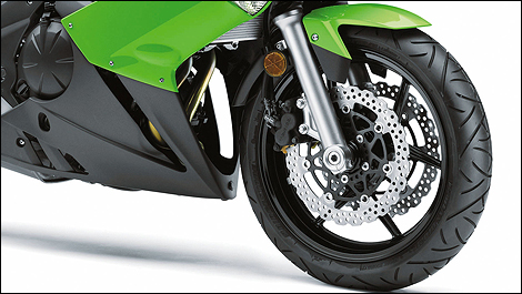 | La Ninja 650R adopte un nouveau système de freinage plus performant. |