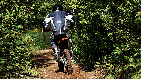 La 250 XCF-W impressionne de par ses performances, son efficacité et sa facilité d’utilisation. Alors que KTM la destine plus pour la compétition que le loisir sportif, on se prend à rouler efficacement, sans effort, et on s’amuse comme un fou. Le moteur toujours présent et la partie cycle dynamique donnent l’impression que tout est facile à son bord. Performance de haut niveau et facilité déconcertante sur tout type de terrain! Voilà qui résume bien la 250 XCF-W. Père Noël j’en veux une!