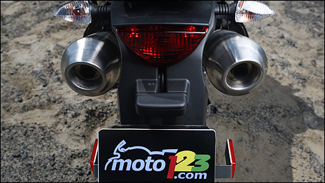 La 990 d'aujourd'hui veut plaire sur les deux types de revêtement, elle qui a lentement évolué vers le confort routier au cours des 3-4 dernières années. Pour des fins de tourisme, la selle relativement large demeure confortable après plus de 8 heures de tourisme, tandis que le triangle composé des pédales, de la selle et du guidon permet à un gars de 1,80m comme moi de conduire debout sans trop de peine lorsque la surface devient plus corsée. « Notre » KTM utilise une jante avant de 21 po axée hors-route, et des pneus Pirelli Scorpion A/T à penchant routier. Ces pneus se tortillent un peu sur le bitume tout en demeurant plus qu'acceptables sur cette surface, en plus de mordre comme les griffes de Satan sur les beaux chemins de terre ou gravier.