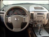L'espace est le meilleur argument de vente du Titan. Aucune autre camionnette avec cabine double n'offre autant d'espace pour les passagers. Lorsque les banquettes ne sont pas utilisées, elles se replient contre la paroi interne et le plancher plat maximise l'espace de rangement intérieur derrière le conducteur. L'aménagement du tableau de bord est simple et sans artifice, toutefois comme plusieurs produits Nissan, les plastiques n'ont pas fière allure et donne un côté bon marché qui gâche un peu la sauce. Quelques trouvailles originales ajoutent au côté pratique du Titan. La boîte incorpore un système baptisé "Utili-Track" qui la sépare en cinq sections distinctes. Avec une foule de raccords disponibles, on peut y installer deux motos, ou simplement utiliser une partie de l'espace pour deux sacs d'épicerie. Pour les items plus petits, il y a même un espace de rangement verrouillable sous l'aile arrière gauche.