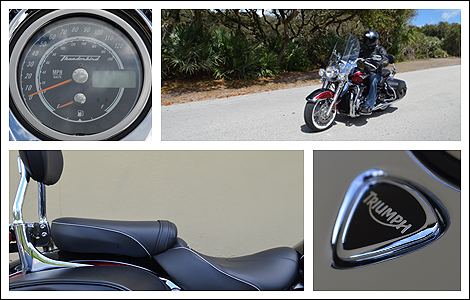 La Triumph Thunderbird dispose des attributs d’une grande routière : des valises de bonne contenance, un grand parebrise facile à retirer et juste assez incliné pour réduire les vibrations au niveau du casque, ainsi qu’une selle exemplaire qui procure un bon soutien.