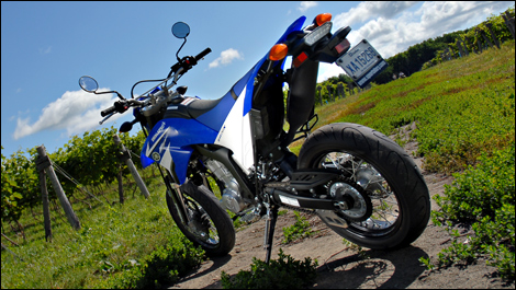 Une double usage ?Sachez que cette moto est offerte en version à double usage. La WR250R est quasi identique à sa soeur supermotard à l'exception des roues de 21 pouces à l'avant et de 18 à l'arrière chaussées de pneus tout-terrains, du système de freinage moins puissant, mais plus facile à doser, d'une meilleure garde au sol et d'une calibration plus souple des suspensions. Elle est donc mieux adaptée à une conduite énergique en sentier tout en offrant un comportement intéressant sur la route.  | | La nouvelle monture du type supermotard de Yamaha est prête à s'attaquer aux meilleures de sa catégorie. |